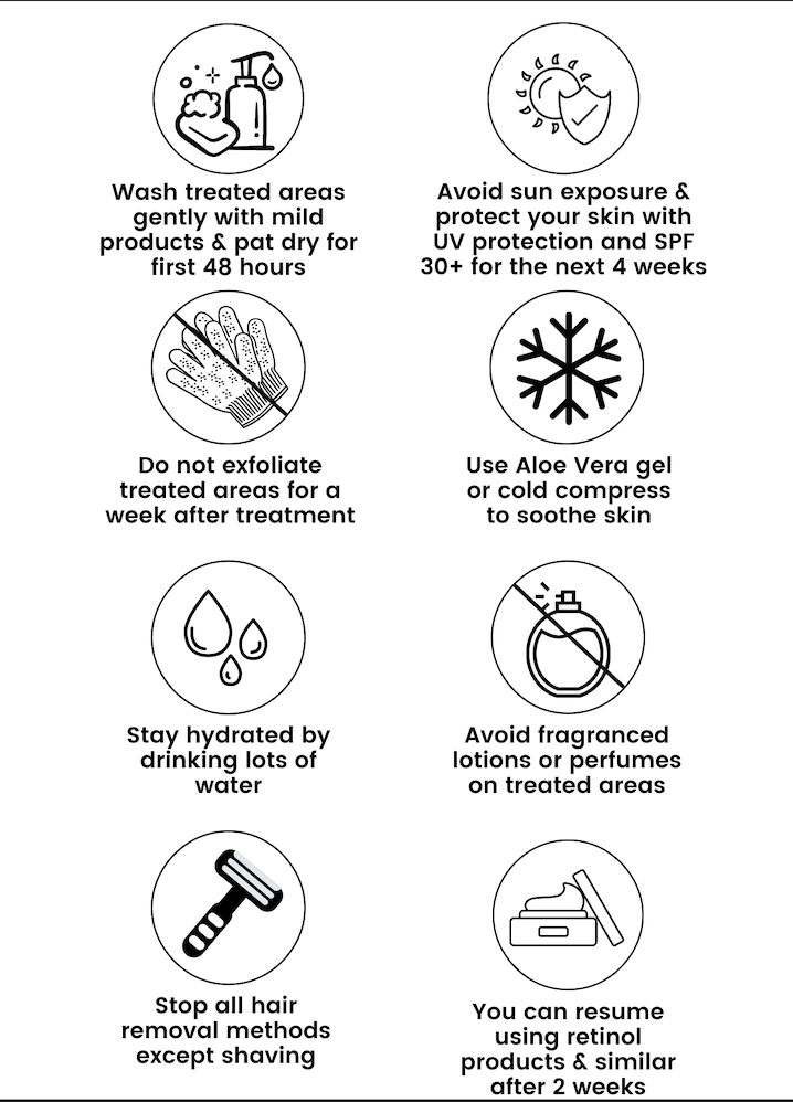 One of the most common side-effects felt by most patients is a little skin irritation and redness of the skin. However, typical discomfort of the skin generally last 2-24 hours post the procedure.